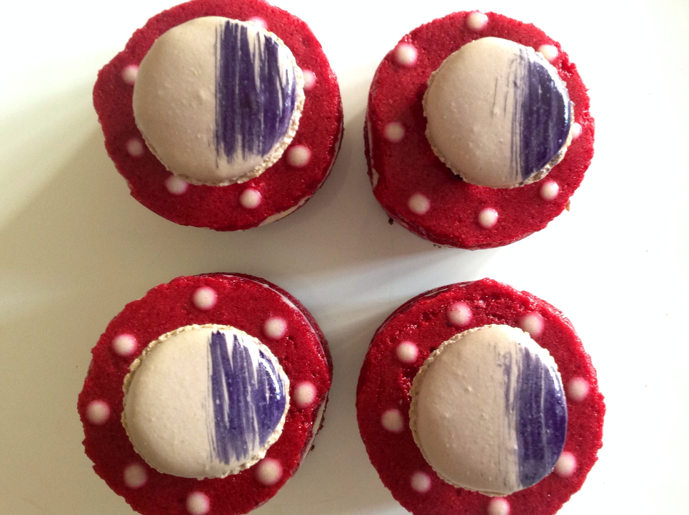 When the macarons were cooked, I brushed them with a little blackcurrant juice. Purely for the fun of it!