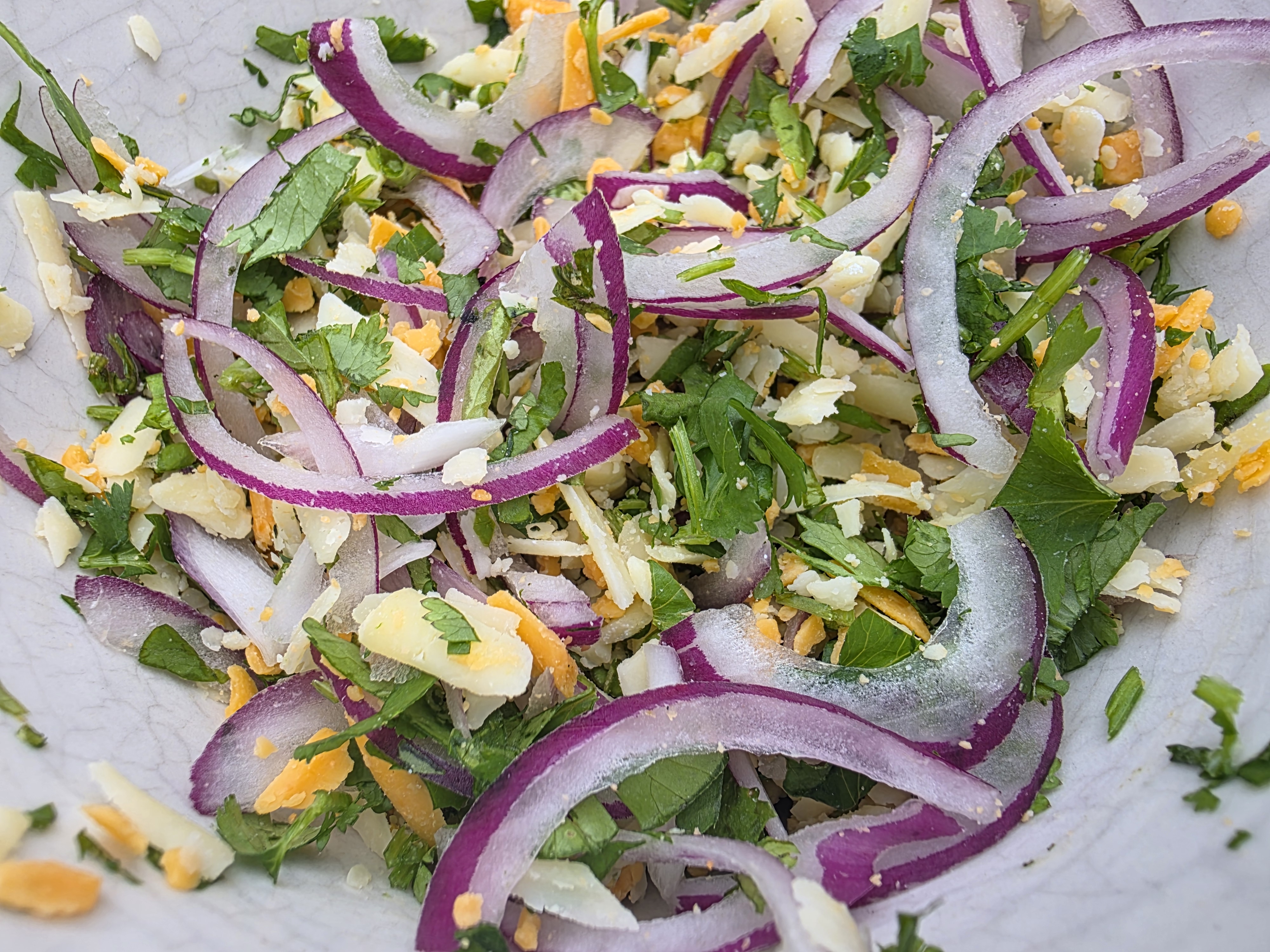 (3) Mix the cheese, onions, coriander and popped mustard seeds (if using) in a bowl. Alternatively, you can simply mix the chutney with the cheese mixture and dollop it on top of the bread.
