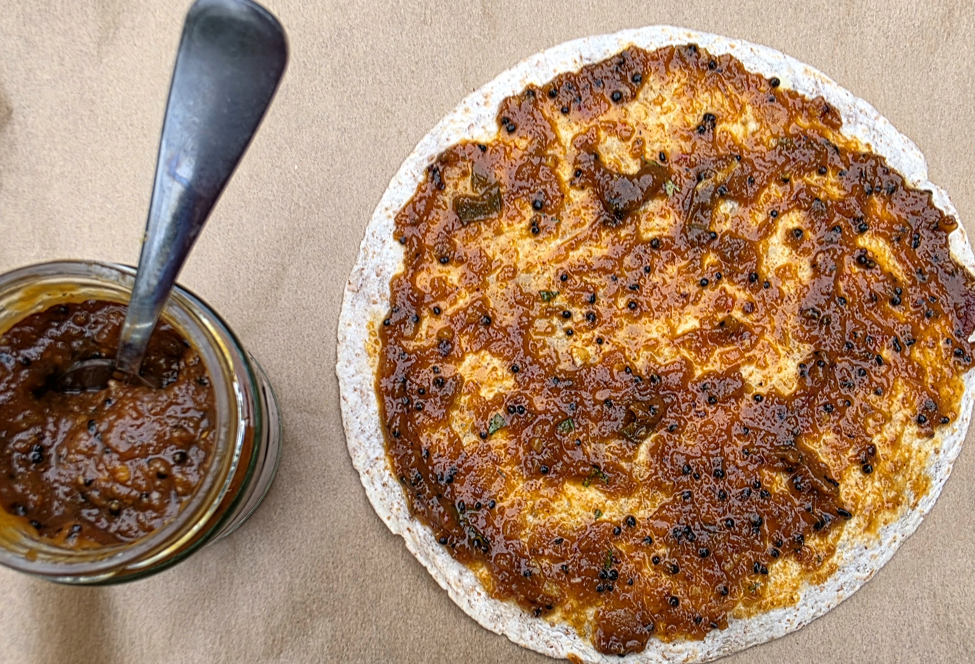Cheese on toast has always been one of my favourite snacks, and this version is my “flatbread take” on the sublime Himalayan cheese on toast sold in the restaurant chain Mowgli: it is punchy, fragrant and comforting. It is also very easy to make with a good quality commercial Indian chutney.