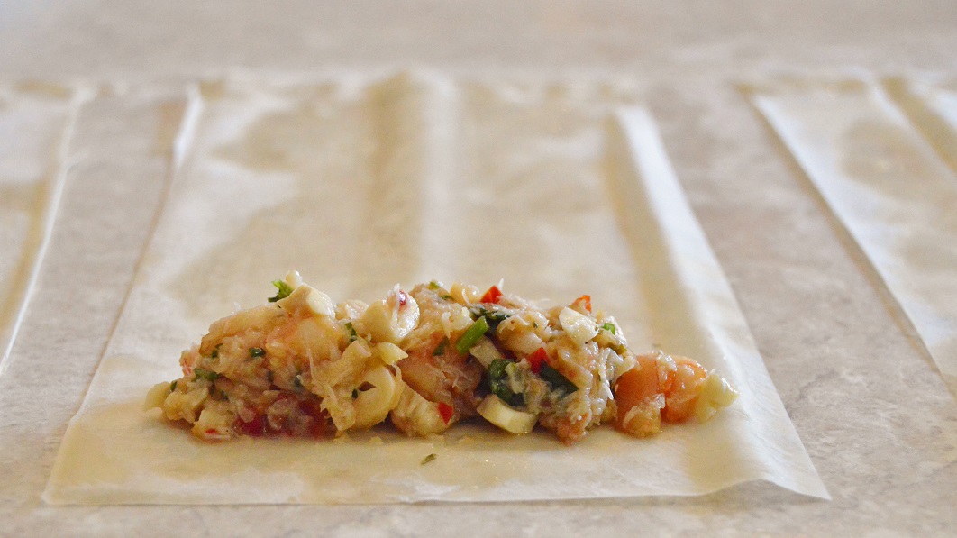 Previous Image Next Image Spiced prawn and crab rolls (A) place filling over one end of the pastry Share this: Share on X (Opens in new window) X Share on Facebook (Opens in new window) Facebook Share on Pinterest (Opens in new window) Pinterest Email a link to a friend (Opens in new window) Email Print (Opens in new window) Print Like Loading...